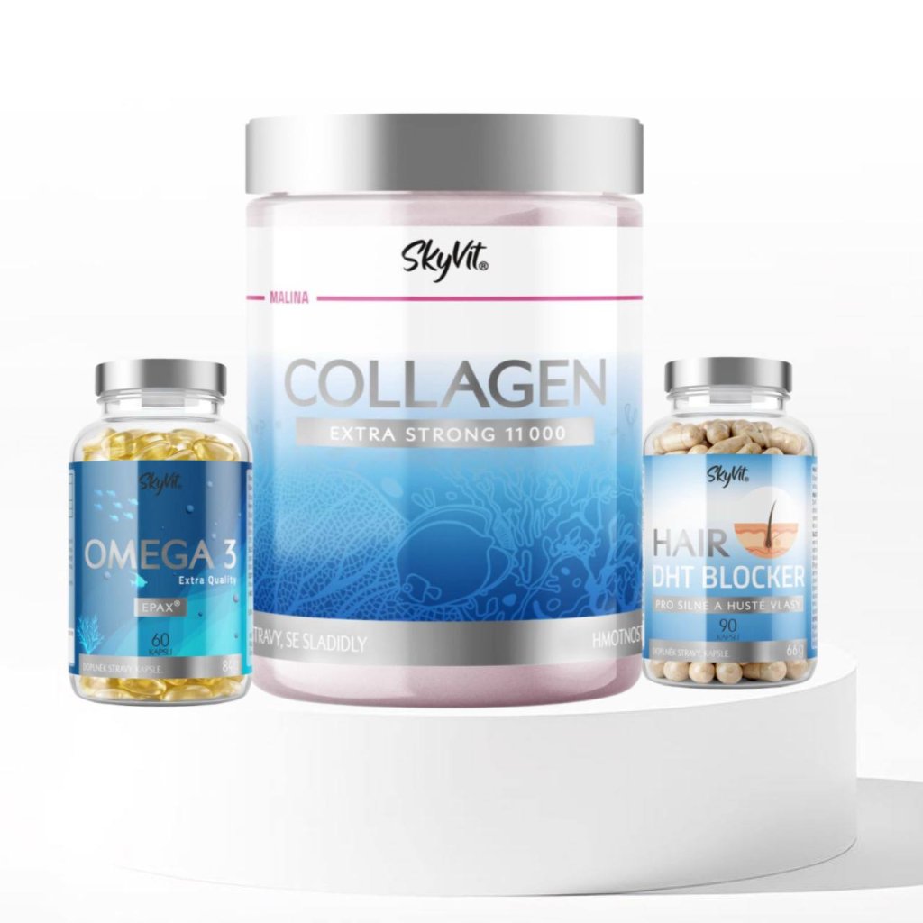 Balíček Vlasy růst a hustota Extra SkyVit® (Collagen Extra Strong, Omega 3 60, DHT Blocker 90)