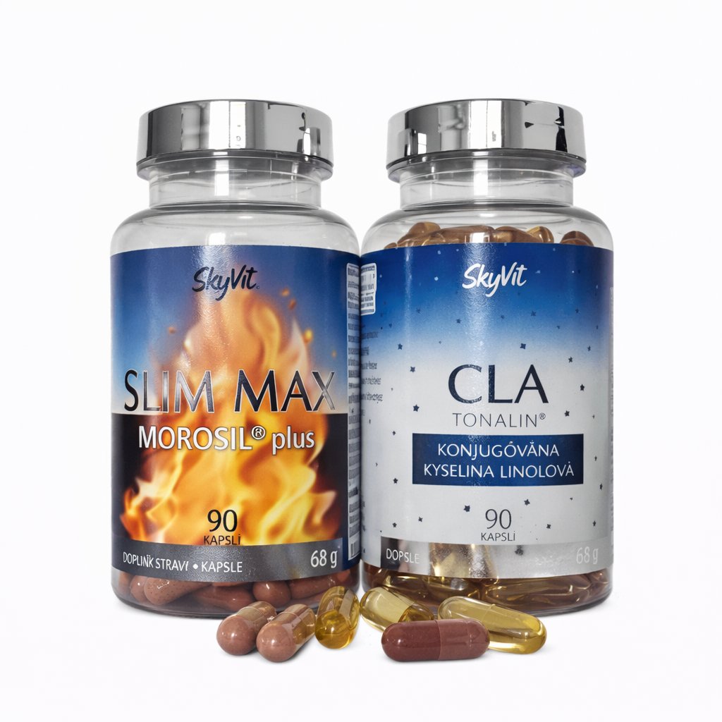 Výhodný balíček Slim Max MOROSIL® plus + CLA Tonalin® SkyVit® – synergická kombinace doplňků stravy pro podporu metabolismu tuků, kontrolu hmotnosti a formování postavy včetně oblasti břicha.
